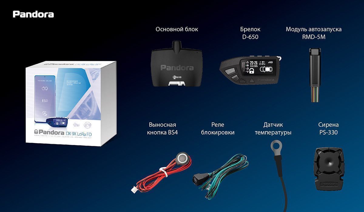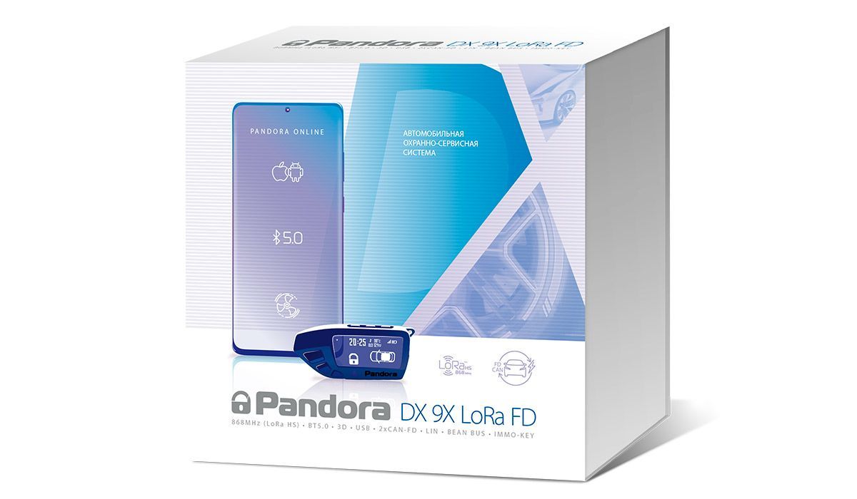 Pandora DX-9x LoRa FD — современная автосигнализация с автозапуском, Bluetooth 5.0, поддержкой CAN FD и дальнобойным радиоканалом LoRa для стабильной связи с автомобилем.