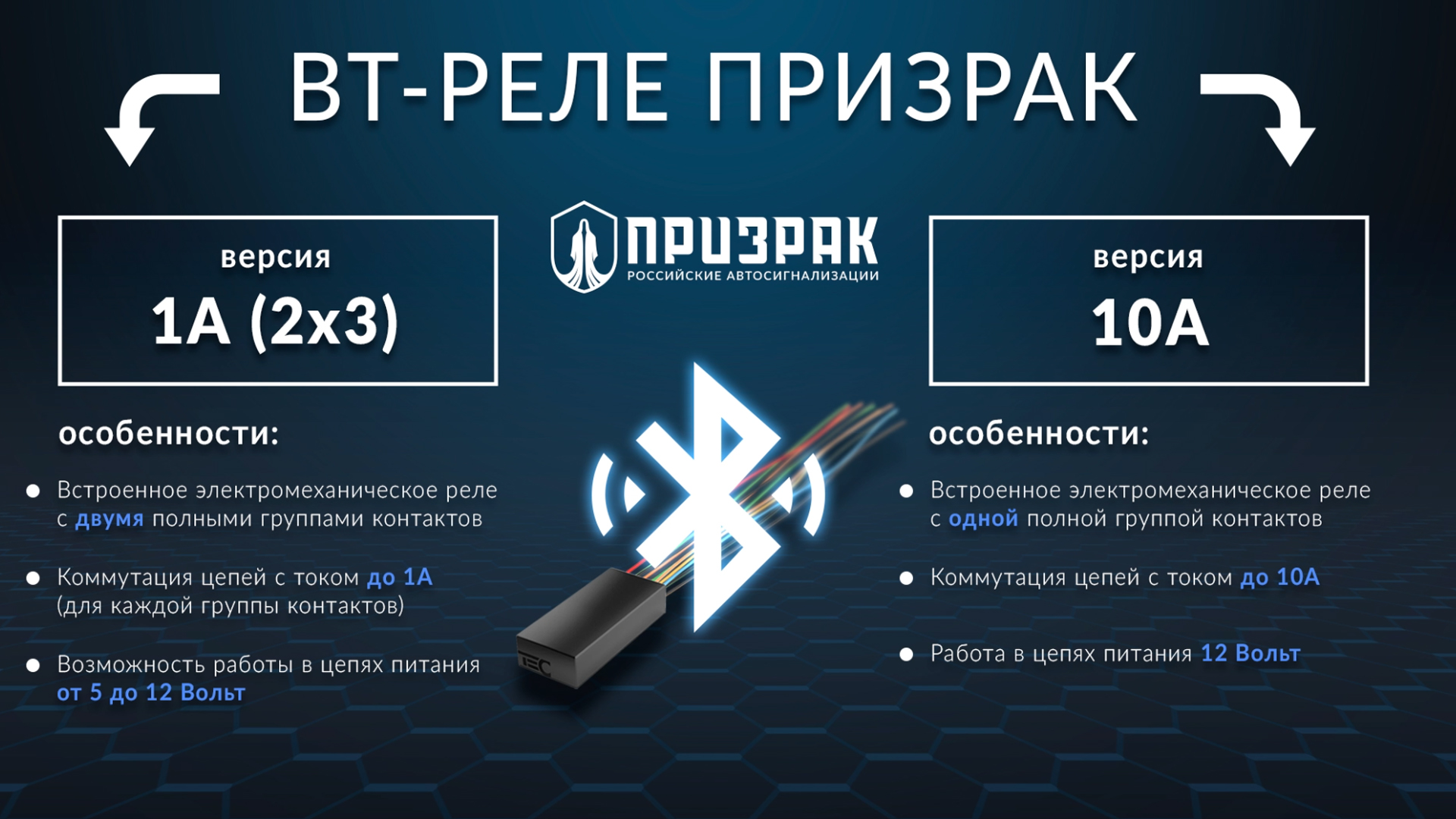 Технические характеристики BT-реле Призрак 10A